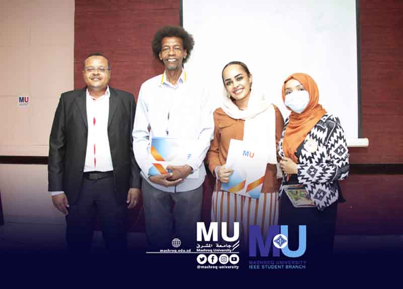 On Wednesday, corresponding to December 12, 2021, Mashreq University celebrated the inauguration of IEEE branch in the presence of Mashreq University Vice President, Dr. Nizar Hallab, Secretary of Scientific Affairs, Mr. Walid Othman, Dean of the College of Engineering, Dr. Fath Al-Rahman, Dean of the Deanship of Distant Education and the Head of the Communications Engineering Department, Dr. Ahmed Mohamed El Hassan, Dr. Essam El Din Ibrahim, Dean of the College of Computer Science and Information Technology, Dr. Kamal Al-Din Al-Khalifa and several other university professors and representatives from other universities.